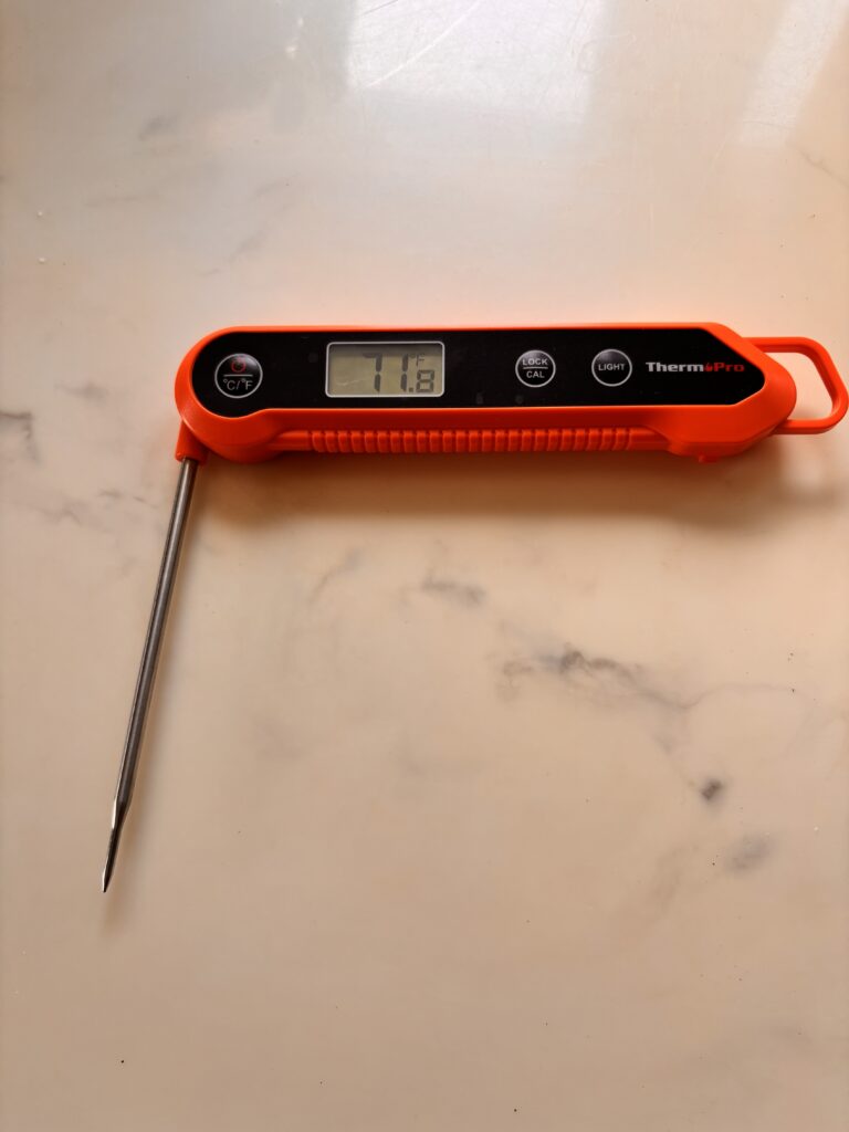 This Waterproof Digital Instant has quickly become one of my favorite kitchen tools. It’s very easy to use, and the large backlit display makes readings clear and highly readable, even in low-light settings.