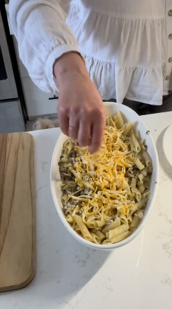• Add drained pasta to the pan. Stir in blended cottage cheese and a splash of reserved pasta water until creamy.